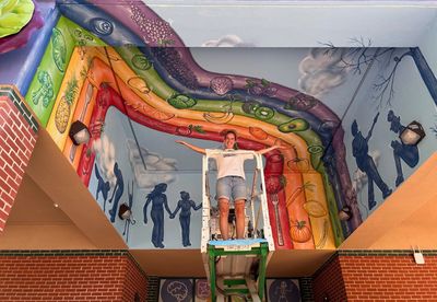For two weeks I painted like Michelle-Angelo 20 feet in the air on a swaying scissor lift. The fruits of my labor are bursting from a colorful rainbow, surrounded by people being active, mindful and living a healthy lifestyle.